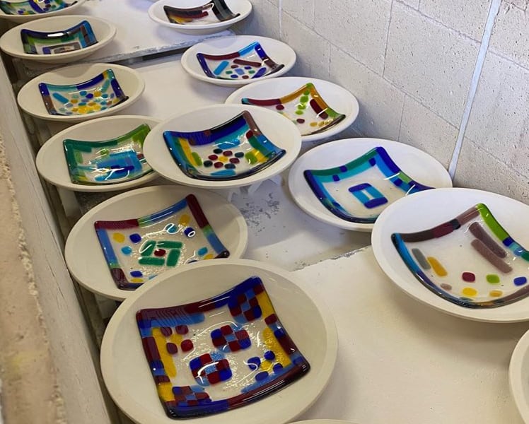 宮城県仙台市秋保町のガラス工房 尚では、ガラス作品の制作体験ワークショップを行っております。様々な色のガラスのピースを使用し、好きな模様のオリジナル作品を制作することが可能です。